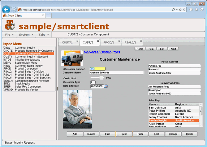 Tab Group with 3 ispecs (Customer, Name Inquiry, Inquiry) in the group