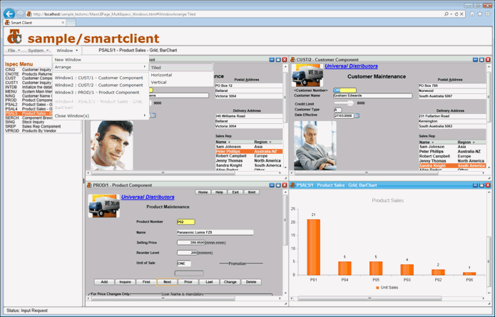When the user opens a new ispec, it is displayed in the current active window. From the menu, the user can add new windows in which to display ispecs. A list of open windows is shown in 'Window' sub-menu. When a window is selected, the ispec within that window is made the current active ispec allowing the user to transact with the ispec.